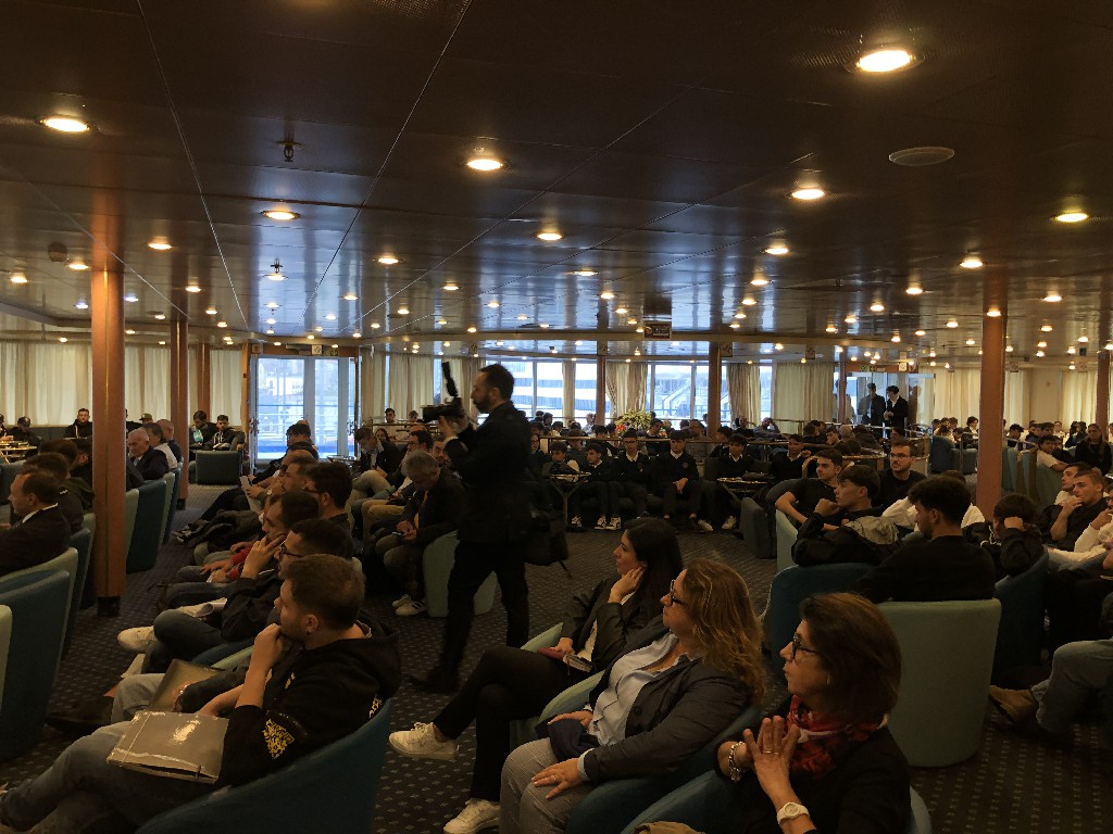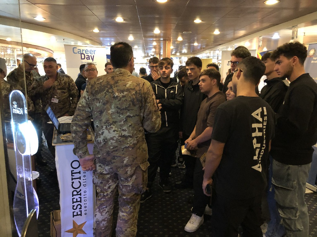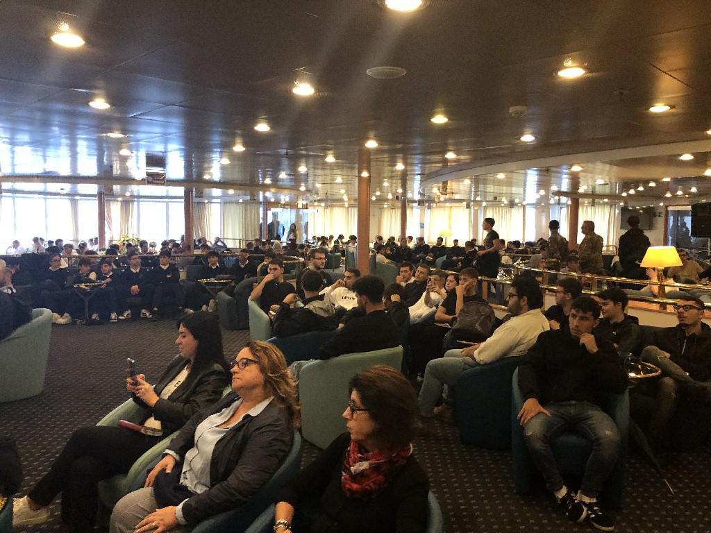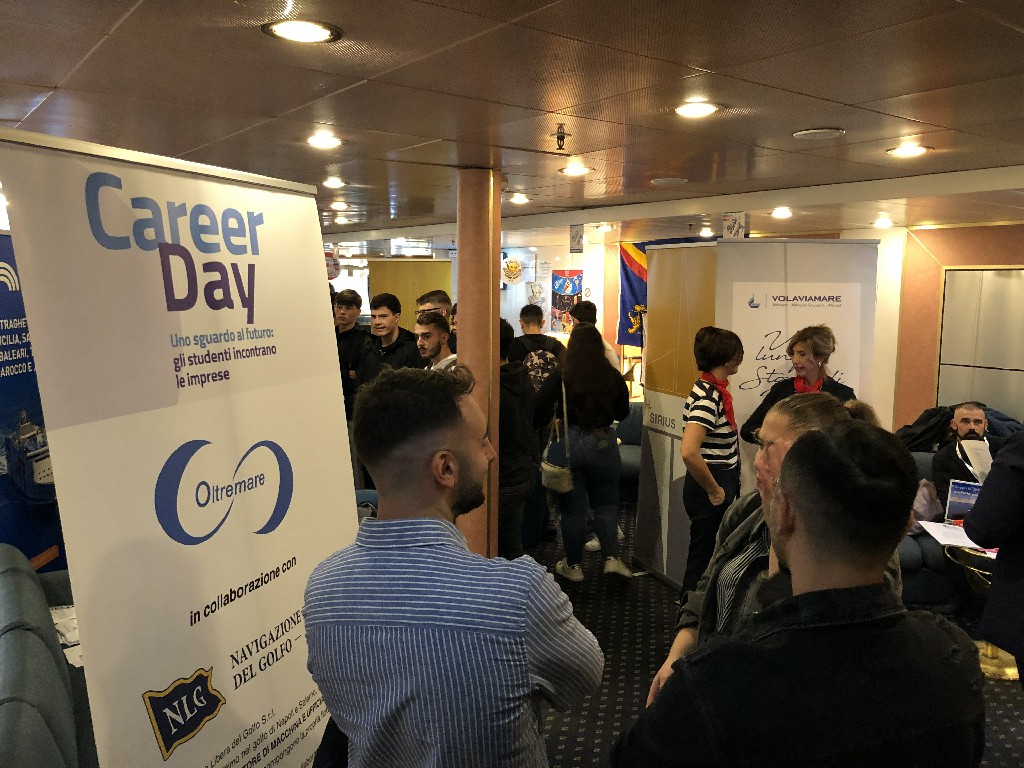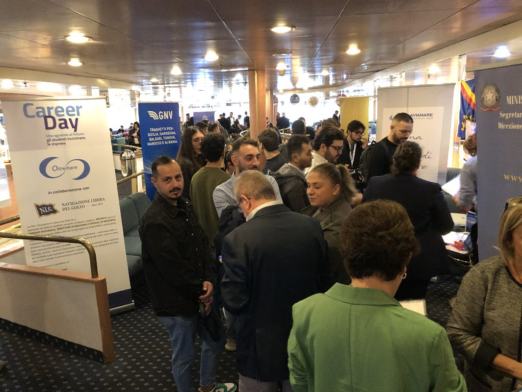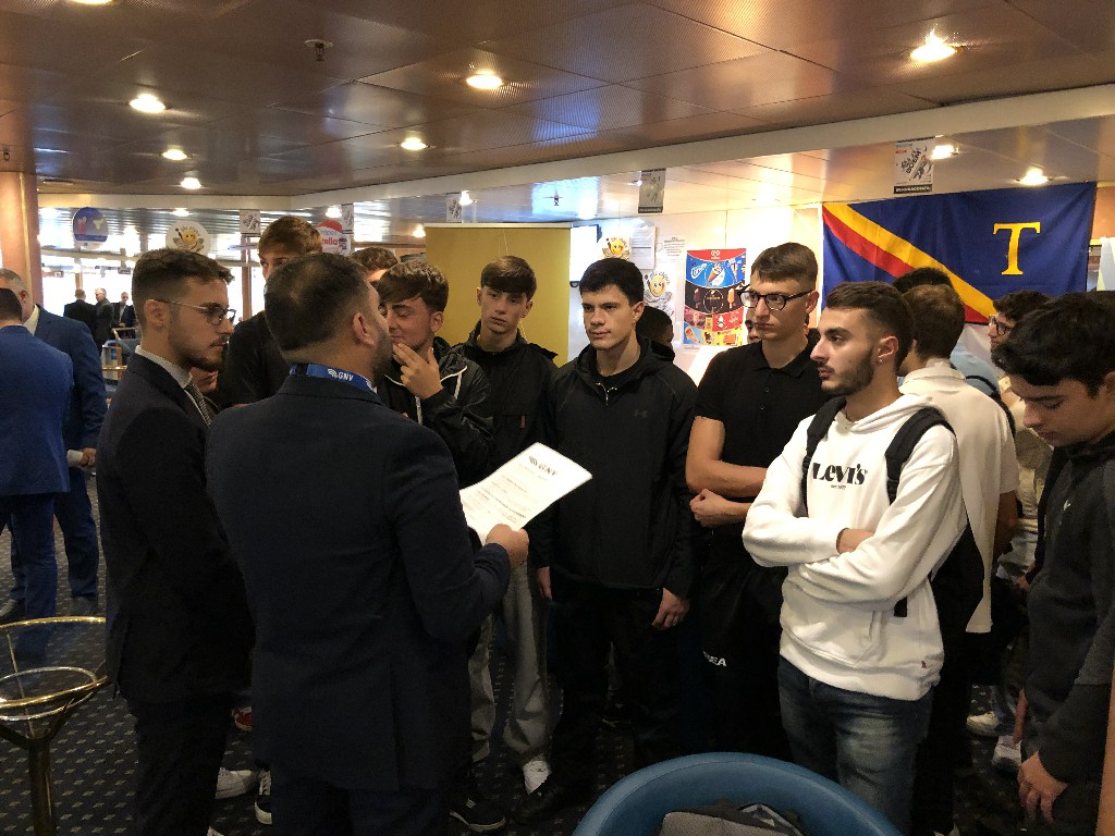 Gli studenti di diversi istituti ad indirizzo nautico, alberghiero, tecnico-professionale e turistico (tra cui l’ ITTL Duca degli Abruzzi di Napoli, l’ISIS Mennella di Ischia, l’ITN Nino Bixio di Piano di Sorrento, l’ISISS Cristoforo Colombo di Torre del Greco e l’ISIS Giovanni XXIII di Salerno), insieme ai laureandi dell’Università Parthenope ed alle numerose persone interessate a poter avviare una carriera lavorativa a bordo delle navi, tra cui ex militari rientranti nell’ambito del progetto “Sbocchi Occupazionali” in capo alla Segreteria Generale della Difesa, hanno potuto esplorare gli ambienti di bordo e colloquiare direttamente con i referenti ed i marittimi delle compagnie di navigazione (Moby, CIN-Tirrenia, Toremar, GNV, Gruppo Lauro, SNAV, Caremar, NLG), scoprendo le posizioni aperte ed approfondendo le interessanti prospettive di carriera offerte.